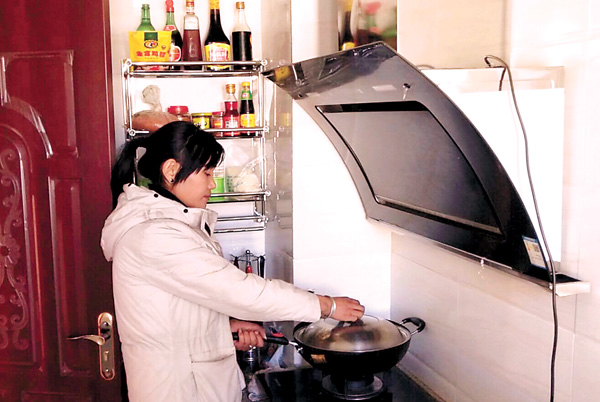 Photo shows a villager from Takar Town of Chushur cooking at the kitchen, Lhasa, capital of southwest China's Tibet Autonomous Region. Her family has been relocated from impoverished areas in 2018. [China Tibet News/Yuan Haixia]