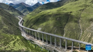 This aerial drone photo taken on July 31, 2025 shows the high-grade highway from Lhasa to Zedang in southwest China's Xizang Autonomous Region. From 2012 to 2024, Xizang has completed a total investment of 401.925 billion yuan (about 55.86 billion U.S. dollars) in fixed assets in highway transportation, and the total highway mileage has increased from 65,200 kilometers in 2012 to 124,900 kilometers by the end of 2024.(Xinhua/Jigme Dorje)