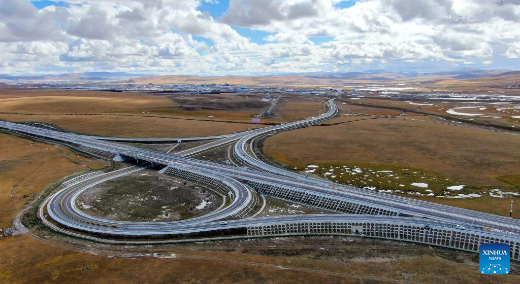 This aerial drone photo taken on Sept. 27, 2021 shows the high-grade highway from Lhasa to Nagqu in southwest China's Xizang Autonomous Region. From 2012 to 2024, Xizang has completed a total investment of 401.925 billion yuan (about 55.86 billion U.S. dollars) in fixed assets in highway transportation, and the total highway mileage has increased from 65,200 kilometers in 2012 to 124,900 kilometers by the end of 2024.(Xinhua/Jigme Dorje)