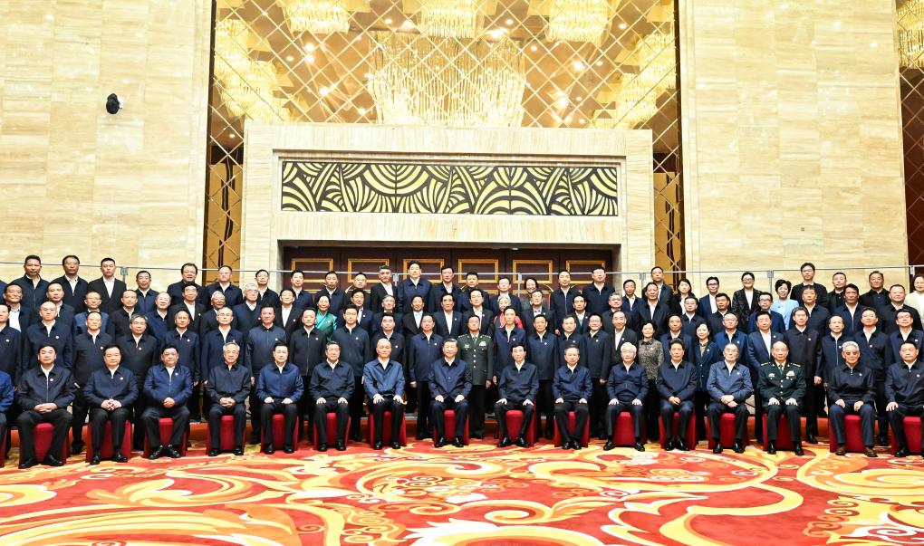 Chinese President Xi Jinping, also general secretary of the Communist Party of China Central Committee and chairman of the Central Military Commission, poses for a group photo while meeting with representatives of cadres who come to work in Xizang from other parts of the country in Lhasa, southwest China's Xizang Autonomous Region, Aug. 20, 2025. (Xinhua/Li Xiang)