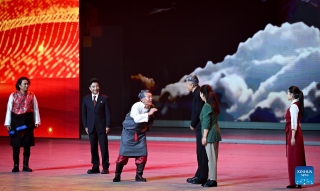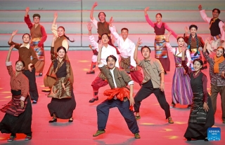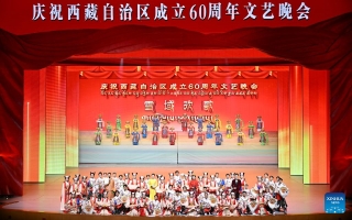 A gala entitled "Joyful Songs of the Snowy Plateau Region" is held to mark the 60th founding anniversary of Xizang Autonomous Region, in regional capital Lhasa, Aug. 20, 2025. (Xinhua/Yan Yan)