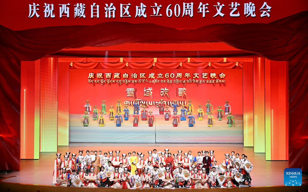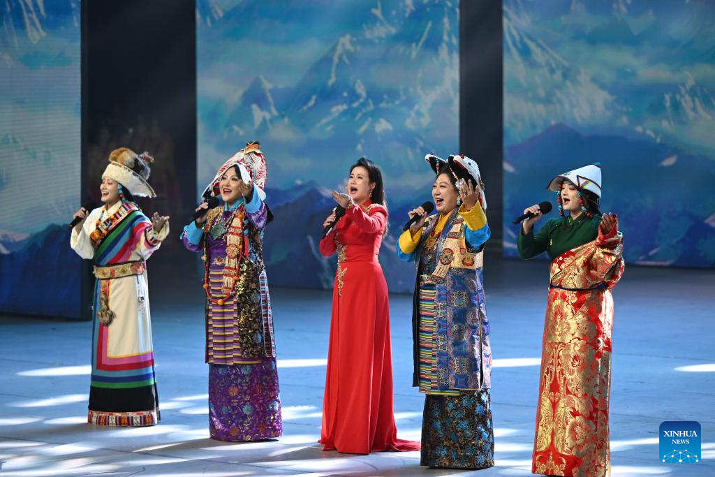 A gala entitled "Joyful Songs of the Snowy Plateau Region" is held to mark the 60th founding anniversary of Xizang Autonomous Region, in regional capital Lhasa, Aug. 20, 2025. (Xinhua/Li Xiang)