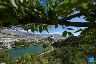 This photo taken on Sept. 25, 2025 shows a view of the Potala Palace in the distance in Lhasa, southwest China's Xizang Autonomous Region. (Xinhua/Jigme Dorje)