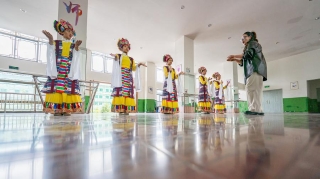 Children practice Tibetan opera at a public art center in Lhasa, southwest China's Xizang Autonomous Region, Sept. 14, 2025. (Xinhua/Jigme Dorje)