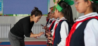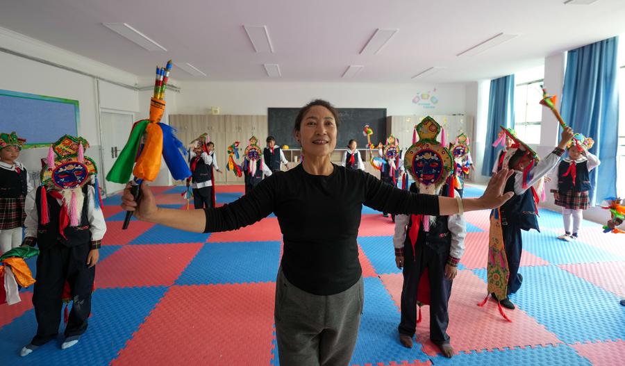 A Tibetan opera teacher gives a lesson at Lhasa Experimental Primary School in Lhasa, southwest China's Xizang Autonomous Region, Sept. 11, 2025. (Xinhua/Jigme Dorje)