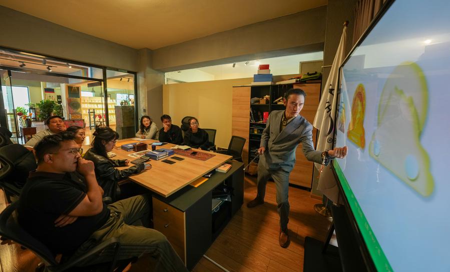 Tashi Badan, 29, is the founder of Yakhore Design Company in southwest China's Xizang Autonomous Region. In recent years, he has led his team to develop a variety of Tibetan culture-themed products such as decorative items, art pieces and fridge magnets. Describing himself as "a bridge," Tashi Badan promotes products through short videos and live streaming, helping local artists reach a broader audience.