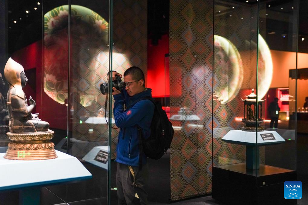 A tourist visits an exhibition at Xizang Museum in Lhasa, southwest China's Xizang Autonomous Region, Oct. 30, 2025. (Xinhua/Zhou Jiayi)