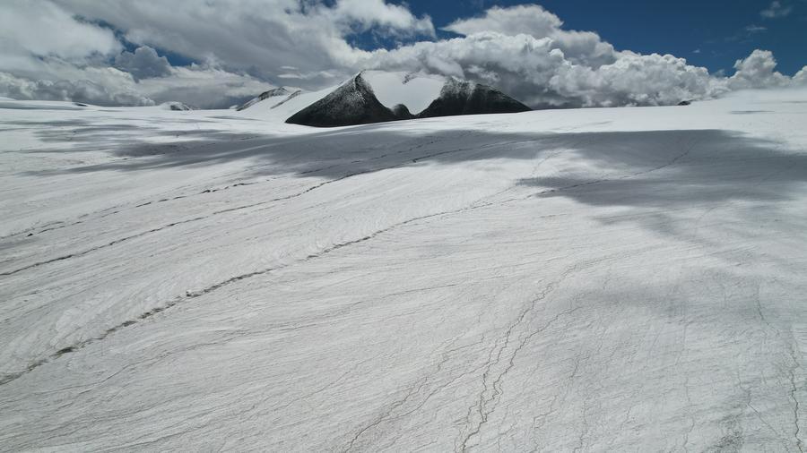 An aerial drone photo shows the Purog Kangri Glacier in southwest China's Xizang Autonomous Region, Sept. 4, 2024. (Xinhua/Liu Shiping)