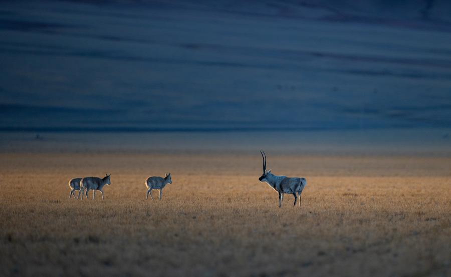 Tibetan antelopes are pictured at the Changtang National Nature Reserve in southwest China's Xizang Autonomous Region, Nov. 30, 2025. (Xinhua/Guo Yu)