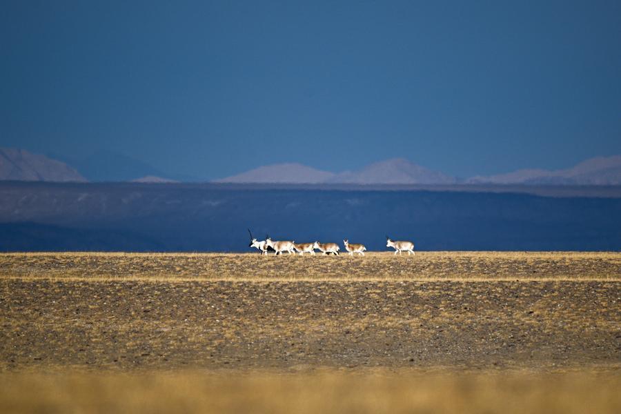 Tibetan antelopes are pictured at the Changtang National Nature Reserve in southwest China's Xizang Autonomous Region, Dec. 2, 2025. (Xinhua/Guo Yu)