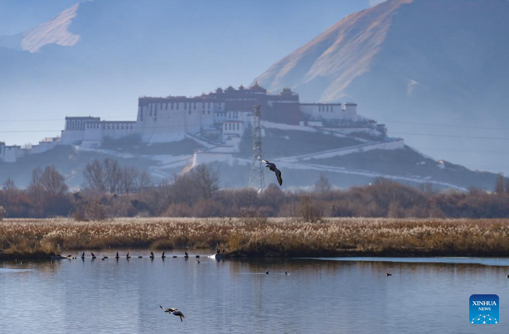 Located in the urban area of Lhasa, the wetland covers an area of 12.2 square kilometers at an average altitude of 3,649 meters.