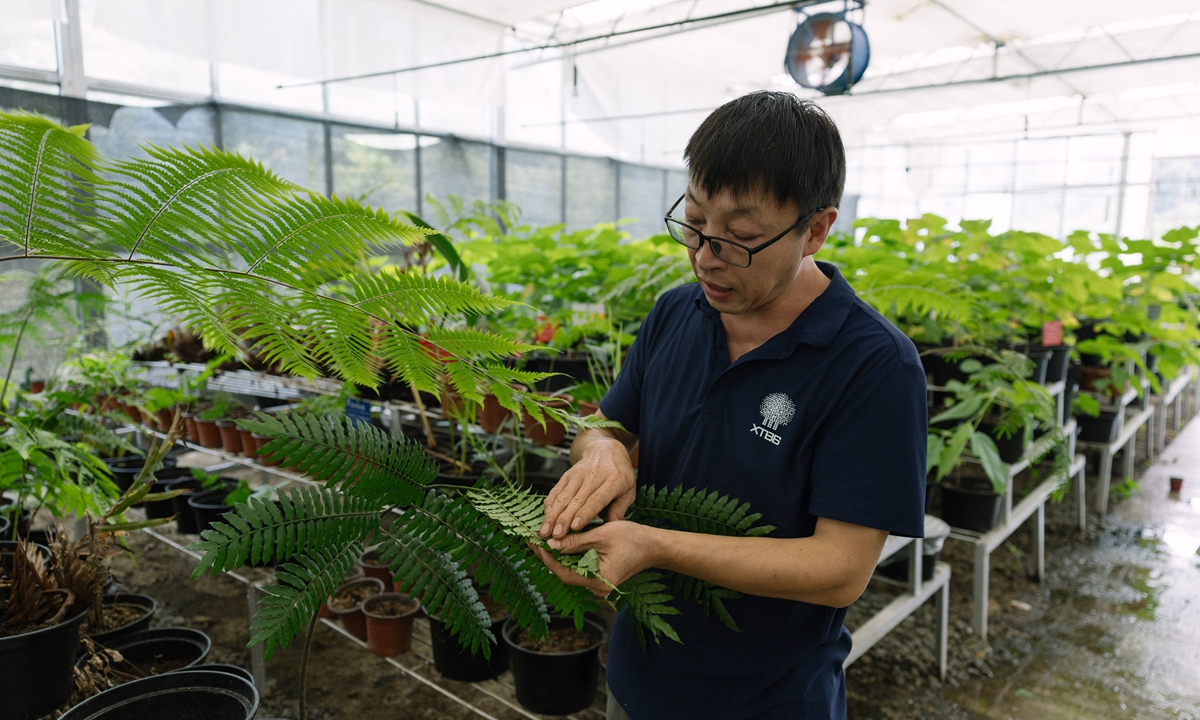 Xi Huipeng's work, as a senior engineer, does not take place in the depths of the primeval forest, but inside greenhouses and nurseries, where he works to propagate plants that are highly vulnerable in the wild.