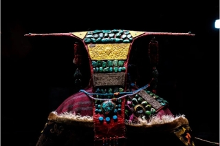 The Pulan women's traditional peacock costume comprises of a headdress, earrings, necklaces, chest ornaments, belts and other adornments. The most precious item is the gawu – a gem-inlaid amulet box passed down from mother to daughter. Every pattern, color and ornament on these garment have a unique symbolic meaning which combines to document Pulan County's long history and cultural exchanges with nearby regions. Because of this, the garments are popularly known as "the epic worn on the body."