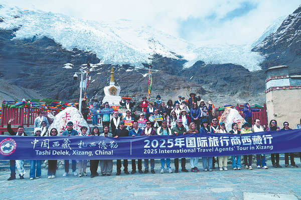 International travel agents gather during a recent familiarization tour in Xizang. CHINA DAILY