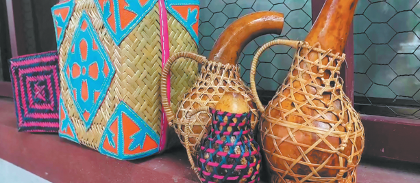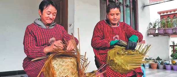 Bamboo craftsman Xin Xiangdong (left) at work with a fellow villager at Badeng village, Metog county, Xizang autonomous region. [PHOTO/XINHUA]