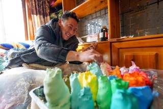 Butter sculptures in vivid shapes of trees, flowers, birds, stars, etc., are gradually gaining popularity in the markets across Lhasa, southwest China's Xizang Autonomous Region, ahead of the Tibetan New Year.