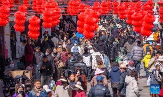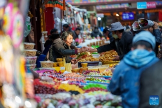 People shop at a market in Lhasa, southwest China's Xizang Autonomous Region, Feb. 15, 2026 (Xinhua/Tenzin Nyida)