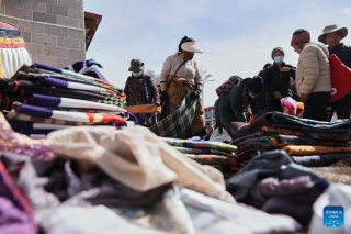 A vendor presents goods at a market in Lhasa, southwest China's Xizang Autonomous Region, Feb. 15, 2026. (Xinhua/Tenzin Nyida)
