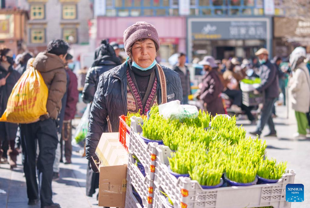 People shop at a market in Lhasa, southwest China's Xizang Autonomous Region, Feb. 15, 2026. (Xinhua/Tenzin Nyida)