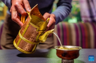 Chocho prepares a "chema" at his home in Lhasa, southwest China's Xizang Autonomous Region, Feb. 16, 2026. (Xinhua/Tenzin Nyida)