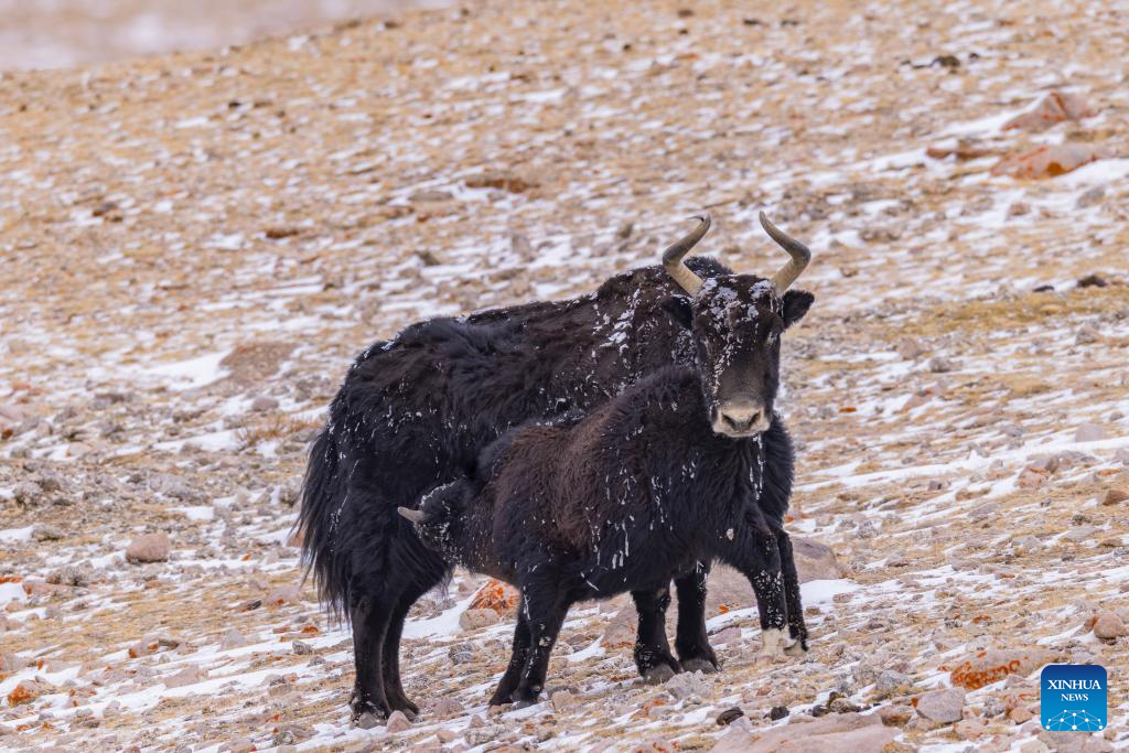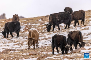 This photo taken on March 16, 2026 shows wild yaks near the Zangser Kangri Glacier at the Changtang National Nature Reserve, southwest China's Xizang Autonomous Region. March 21 marks the World Day for Glaciers. (Photo by Sonam Jamcan/Xinhua)