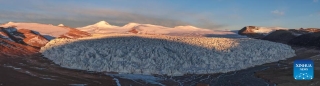 A stitched aerial drone photo taken on March 10, 2026 shows a view of the Zangser Kangri Glacier at the Changtang National Nature Reserve, southwest China's Xizang Autonomous Region. March 21 marks the World Day for Glaciers. (Photo by Sonam Jamcan/Xinhua)