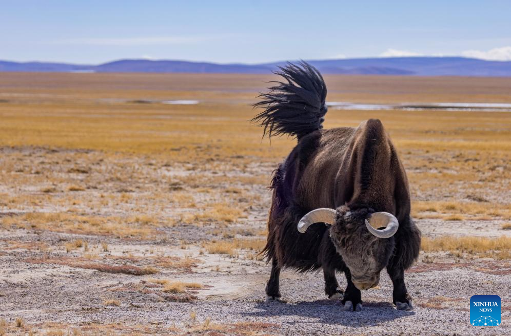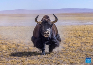 This photo taken on March 12, 2026 shows a wild yak near the Zangser Kangri Glacier at the Changtang National Nature Reserve, southwest China's Xizang Autonomous Region. March 21 marks the World Day for Glaciers. (Photo by Sonam Jamcan/Xinhua)