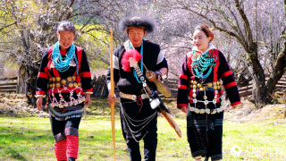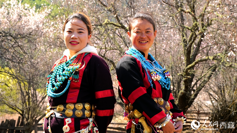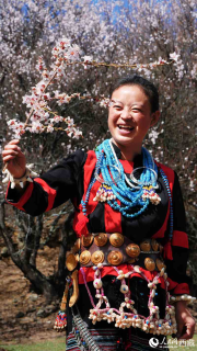 The traditional costume of the Lhoba ethnic group, an item on China's list of national intangible cultural heritage, has become one of the highlights of the ongoing 23rd peach blossom tourism and cultural festival in Nyingchi, southwest China's Xizang Autonomous Region.