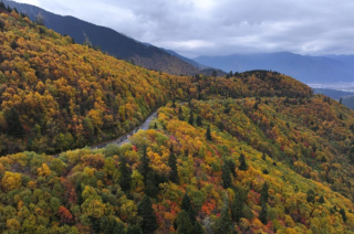 Autumn scenery of Serkyim La Mountain in Nyingchi, China's Xizang