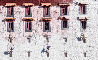 Workers paint wall of Potala Palace during annual renovation in China's Xizang